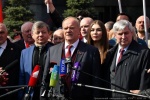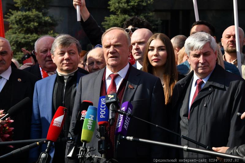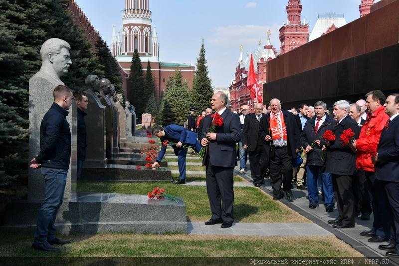 Цветы были также возложены к могиле И.В. Сталина у кремлевской стены. Затем лидер КПРФ обратился к журналистам.