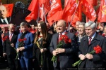 «Я считаю, - выразил мнение лидер КПРФ, - что мы не выйдем из кризиса, если не обопремся на толщу великой советской эпохи, ее мощь, ее энтузиазм, ее подвиг, ее героизм. Меня просто обескуражили заявления некоторых кремлевских деятелей, что в ходе шествия Бессмертного полка нет смысла нести портреты полководцев Победы и Верховного Главнокомандующего Сталина. А с чем тогда вы пойдете? Какое вы имеете право давать такие указания гражданам страны, у которых родители воевали за великую Советскую Родину, за Сталина, за социализм? Какое вы имеете право заявлять, что красный флаг олицетворяет лишь партийность? Он олицетворяет нашу душу, наше мироощущение! Красные прапоры и знамена были и у Дмитрия Донского, и у Александра Невского. Красная площадь, красный угол всегда определяли нашу душу, нашу веру. А самая высокая вера была в справедливость и Советскую власть. Уверен, что эти гнилые, провокационные попытки общество отвергнет. А мы придем на майские манифестации со знаменем Победы, знаменем Ленина, знаменем Октября. Оно для нас священно. И любые попытки заткнуть рот и переписать нашу историю, тщетны!»