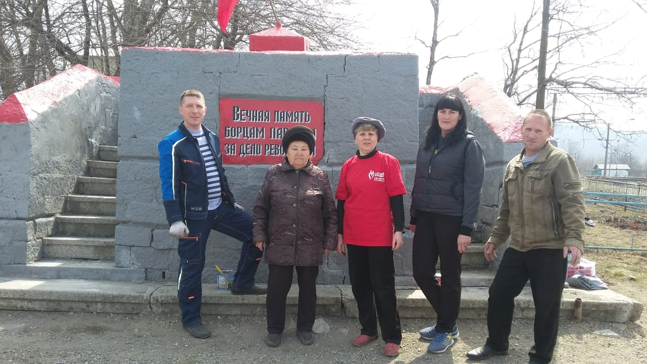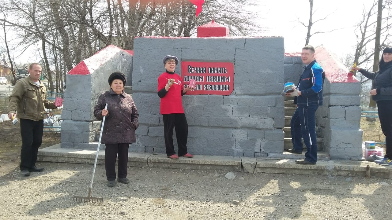 В преддверии 149-ой годовщины со дня рождения основателя первого в мире социалистического государства В.И. Ленина коммунисты Шкотовского района провели субботник на памятнике партизанам.
