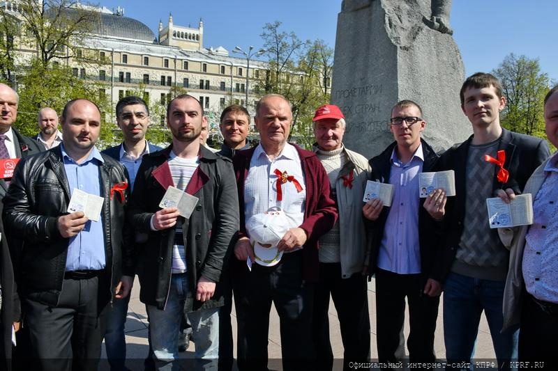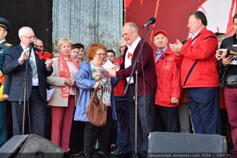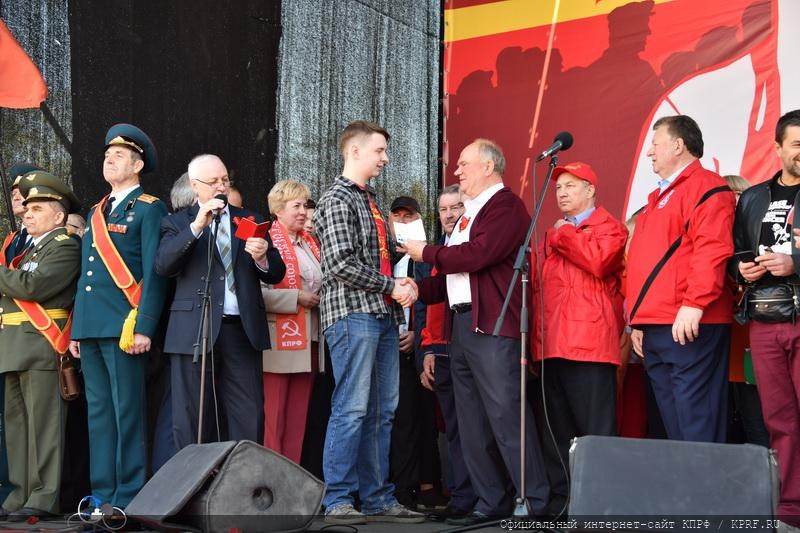 После выступления Г.А. Зюганова состоялось традиционное вручение партийных билетов. Лидер КПРФ и участники митинга поздравили молодое пополнение нашей партии.