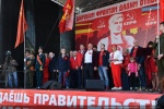 На митинге выступил комсомолец Владимир Крылов. Он потребовал от правящей власти и буржуазных СМИ прекратить политику очернительства и преследования наших товарищей. В частности, такому прессингу в последнее время подвергаются лидер КПРФ Г.А. Зюганов и красный губернатор Хакассии Валентин Коновалов.