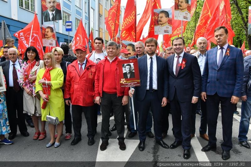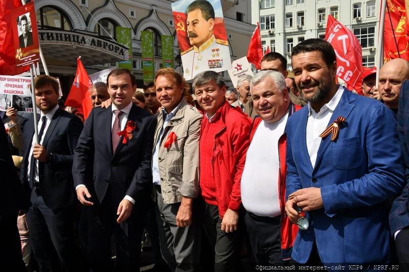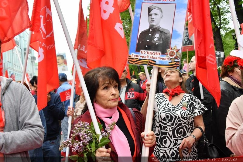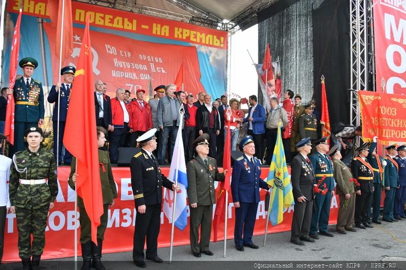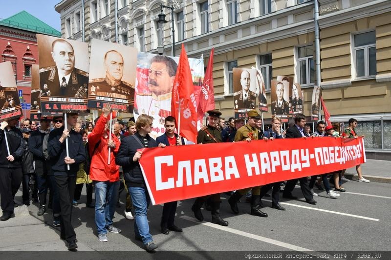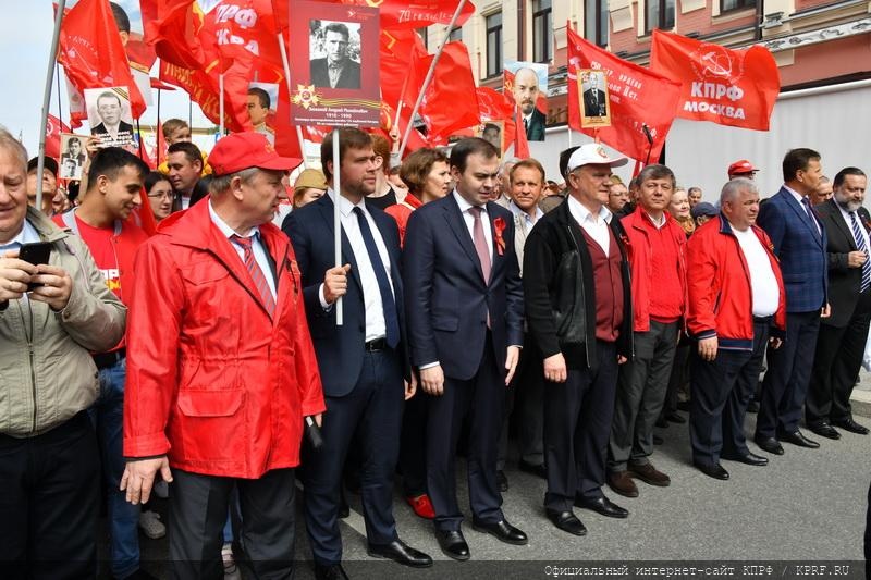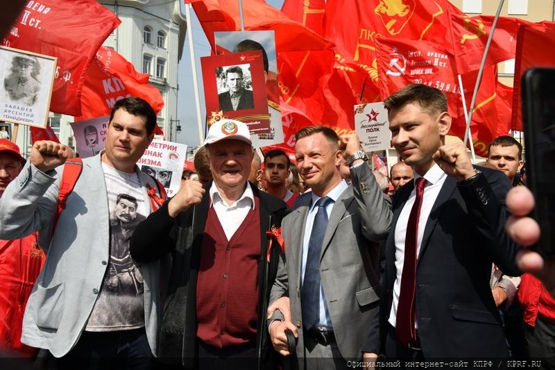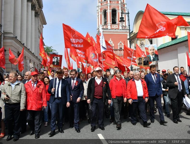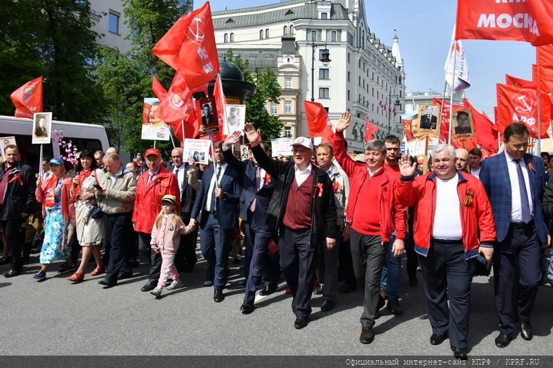 9 мая в Москве в ознаменование 74-й годовщины Победы в Великой Отечественной войне состоялись шествие и митинг. Акция проходила под лозунгами: «Слава народу – победителю!», «Знамя Победы – на Кремль!», «Сталин, Победа, социализм!», «Остановим русофобию, антисоветизм и пропаганду фашизма!». Ведущими митинга, состоявшегося на площади Революции, были советник Председателя ЦК КПРФ В.Р. Родин и секретарь Московского ГК КПРФ Н.Г. Зубрилин. Первым перед участниками акции выступил Председатель ЦК КПРФ, лидер Народно-патриотических сил России Г.А. Зюганов.