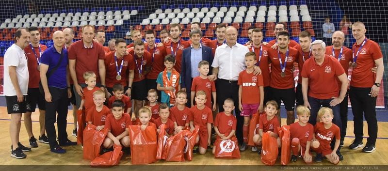 На торжественной церемонии открытия звезды МФК КПРФ провели показательный матч против самых маленьких футболистов КПРФ. А затем у всех присутствующих была возможность взять автографы и сфотографироваться с серебряными призерами Суперлиги.