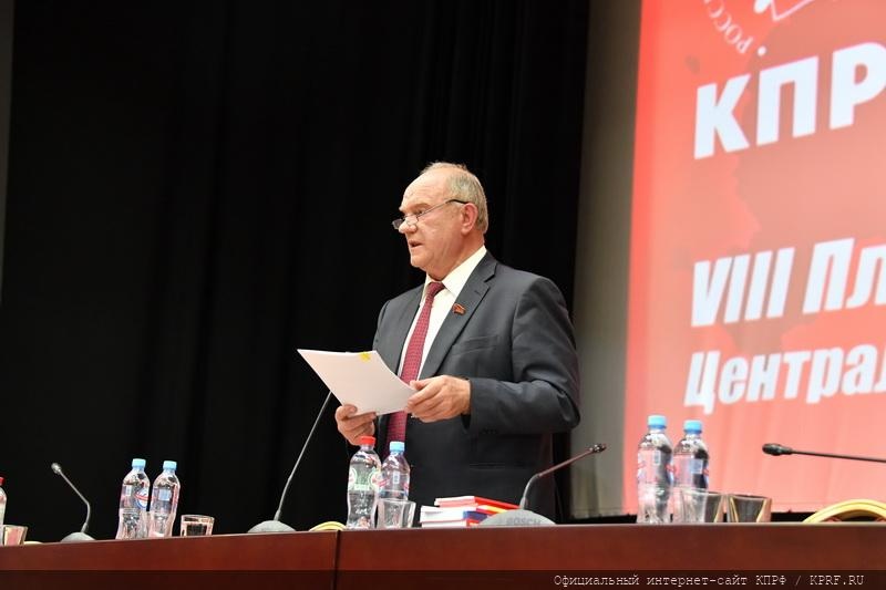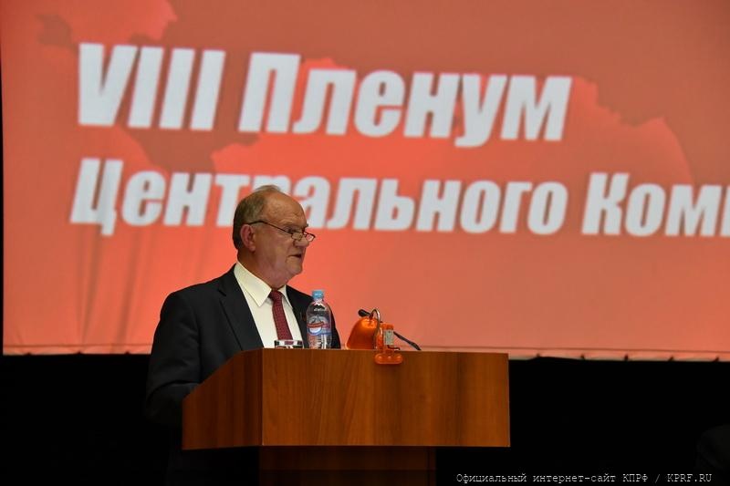 На этом церемония открытия VIII (июньского) Пленума ЦК КПРФ завершилась. Слово для основного доклада было предоставлено Председателю ЦК КПРФ Г.А. Зюганову.