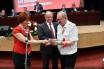 После этого состоялась торжественная церемония вручения партийных наград. Г.А. Зюганов поздравил на сцене лауреатов Ленинской премии 2019 года Н.Н. Губенко и А.А. Кравца. Также группе товарищей были вручены памятные медали ЦК КПРФ «140 лет со дня рождения И.В. Сталина». Была награждена и команда КПРФ по шахматам, занявшая второе место в командном чемпионате России.