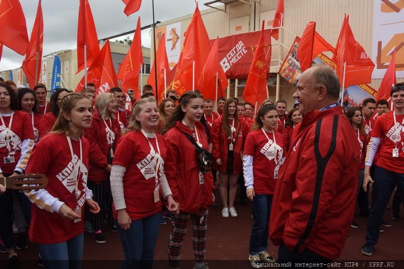 1 августа Председатель ЦК КПРФ Г.А. Зюганов посетил молодежный форум «Территория смыслов – 2019». На этот раз традиционный молодежный форум проходил в подмосковном Солнечногорске. В очередной тематической смене приняли участие молодые политики, как представители парламентских партий, так и беспартийные. Одной из самых представительных и активных на форуме стала делегация Ленинского Комсомола.
