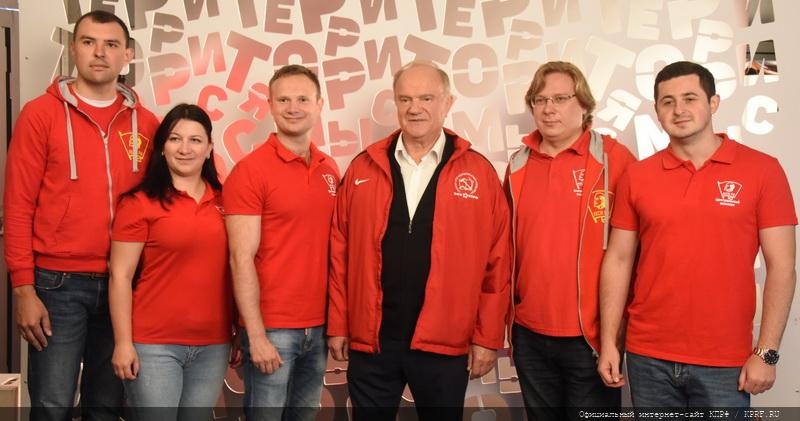 После этого лидер КПРФ в «красном павильоне» выступил перед комсомольским активом. Ребята приветствовали Г.А. Зюганова дружным скандированием: «Ленин! Партия! Комсомол!».