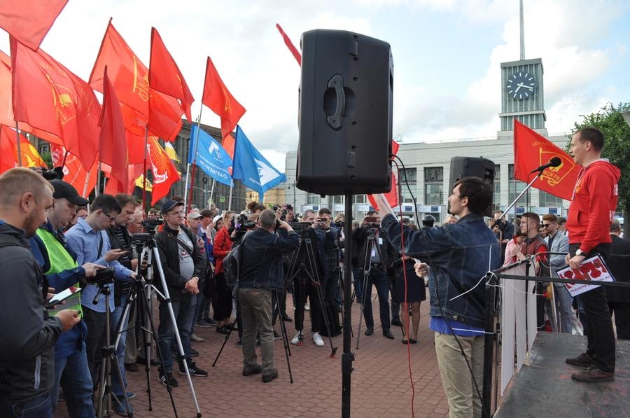 Свыше трехсот человек приняли участие в состоявшемся 15 августа 2019 года митинге на площади Ленина, организованном Санкт-Петербургским отделением КПРФ в рамках Всероссийской акции протеста «За честные и чистые выборы! За власть закона и социальные права граждан!».