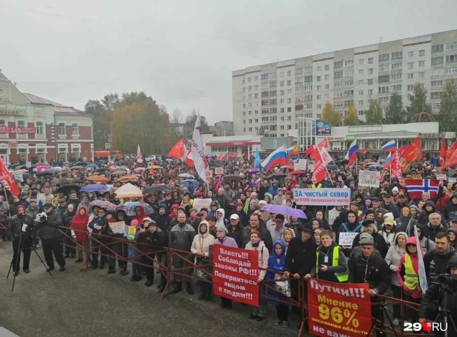 В Архангельске и Северодвинске несколько тысяч человек пришли на митинги против строительства мусорного полигона на станции Шиес, куда планируют привозить отходы из Москвы, сообщают 29.ru и «Северо-Запад. МБХ Медиа».
