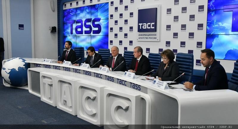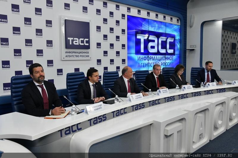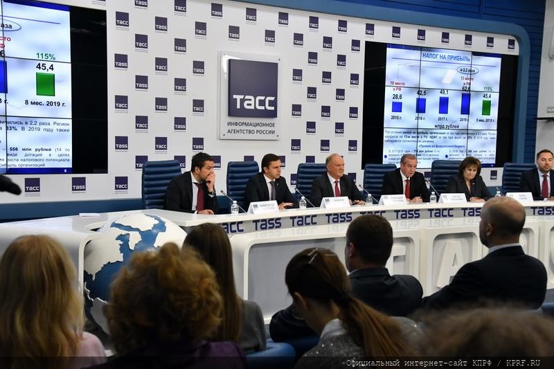 8 октября в ИА ТАСС прошла пресс-конференция, посвященная предложениям КПРФ по проекту федерального бюджета на 2020 год и плановый период 2021-2022 годов. В пресс-конференции приняли участие Председатель ЦК КПРФ, Руководитель фракции КПРФ в Государственной Думе Г.А. Зюганов, член Президиума ЦК КПРФ, губернатор Иркутской области С.Г. Левченко, член Президиума ЦК КПРФ, губернатор Орловской области А.Е. Клычков, депутат Государственной Думы В.А. Ганзя, Руководитель пресс-службы ЦК КПРФ А.А. Ющенко.