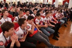 Вместе с тем надо помнить: в этом мире сегодня уважают умных, сильных, здоровых и успешных. А для этого надо максимально сплотиться вокруг главных идей. Когда говорят о национальных идеях, они не рождается в головах. Они выстраданы в походах, боях, подвигах, прозрениях и в том, чем мы гордимся - в нашей великой Победе. Кто бы вам что ни говорил, но советская эпоха показала пример, что мы можем быть самыми образованными, самыми храбрыми, самыми победными и самыми космическими. Возвращаясь к начатому, мы обязаны соединить идеалы святой Руси, великой тысячелетней российской государственности и советской справедливости. Тогда у вас будет достойное будущее!