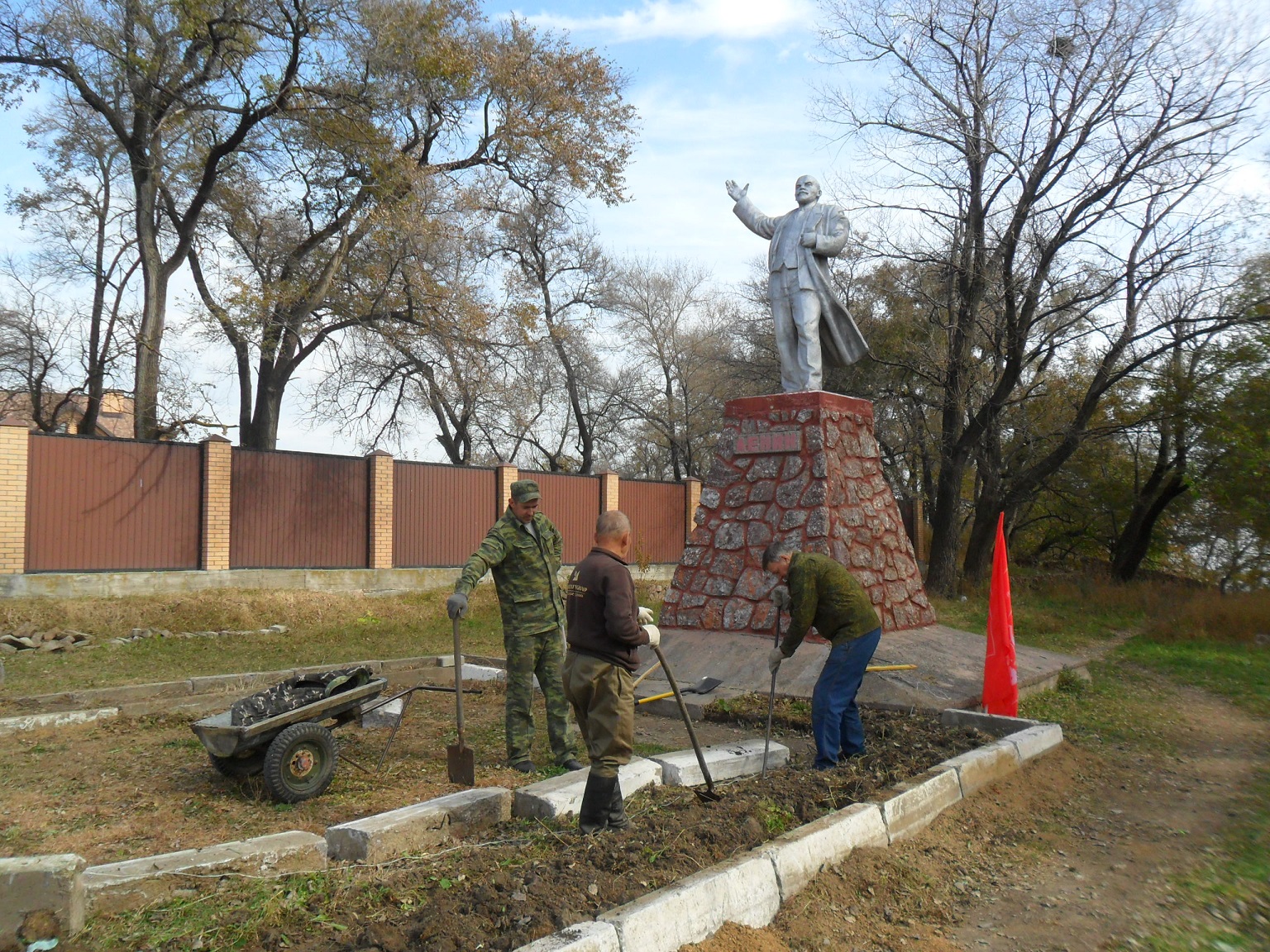 18 и 19 октября коммунисты Ханкайского местного отделения КПРФ славно потрудились на субботнике по благоустройству территории возле памятника В.И.Ленину.