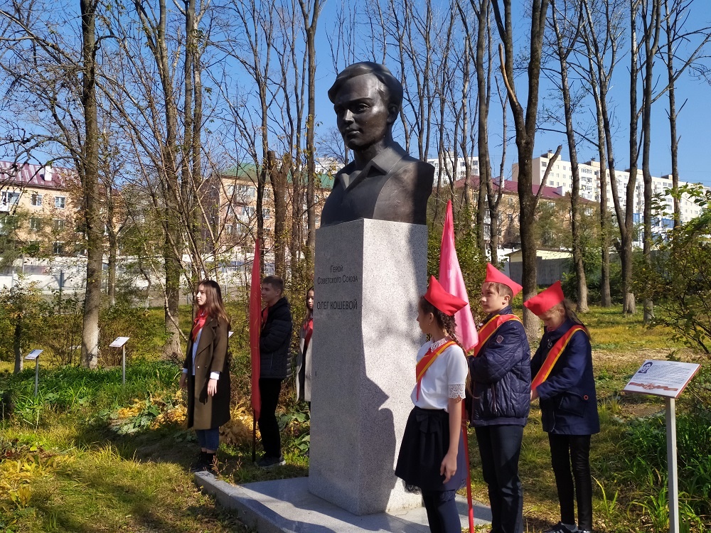 На алее комсомольцев-молодогвардейцев с рассказом о подвиге «Молодой Гвардии» выступила заслуженный учитель РФ Печерская Галина Алексеевна. После этого пионеры провели перекличку Молодогвардейцев.