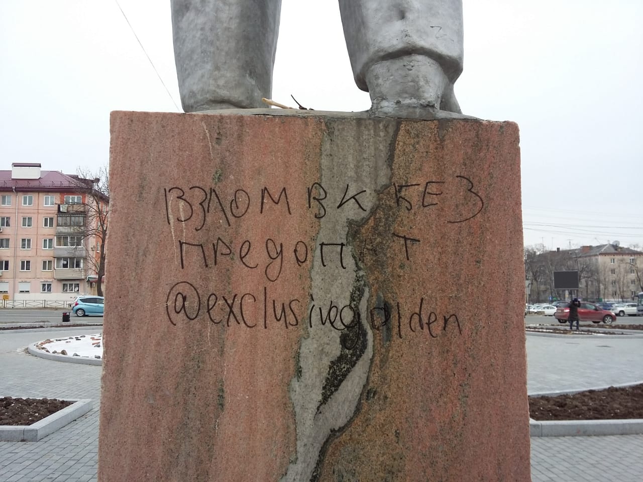 Первым посторонние надписи на памятнике обнаружил депутат Думы АГО Виктор Кириленко, который оперативно известил о случившемся руководство местного отделения КПРФ.