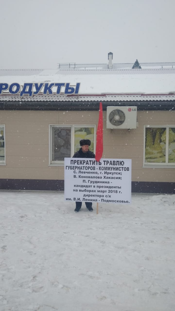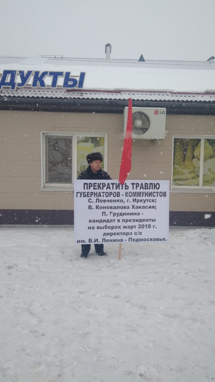 11 декабря 2019 года в городе Дальнегорске в районе Горелое прошли одиночные пикеты с требованием прекратить травлю и политические преследования губернаторов-коммунистов Сергея Левченко и Валентина Коновалова, а также руководителя Совхоза имени Ленина Павла Грудинина.