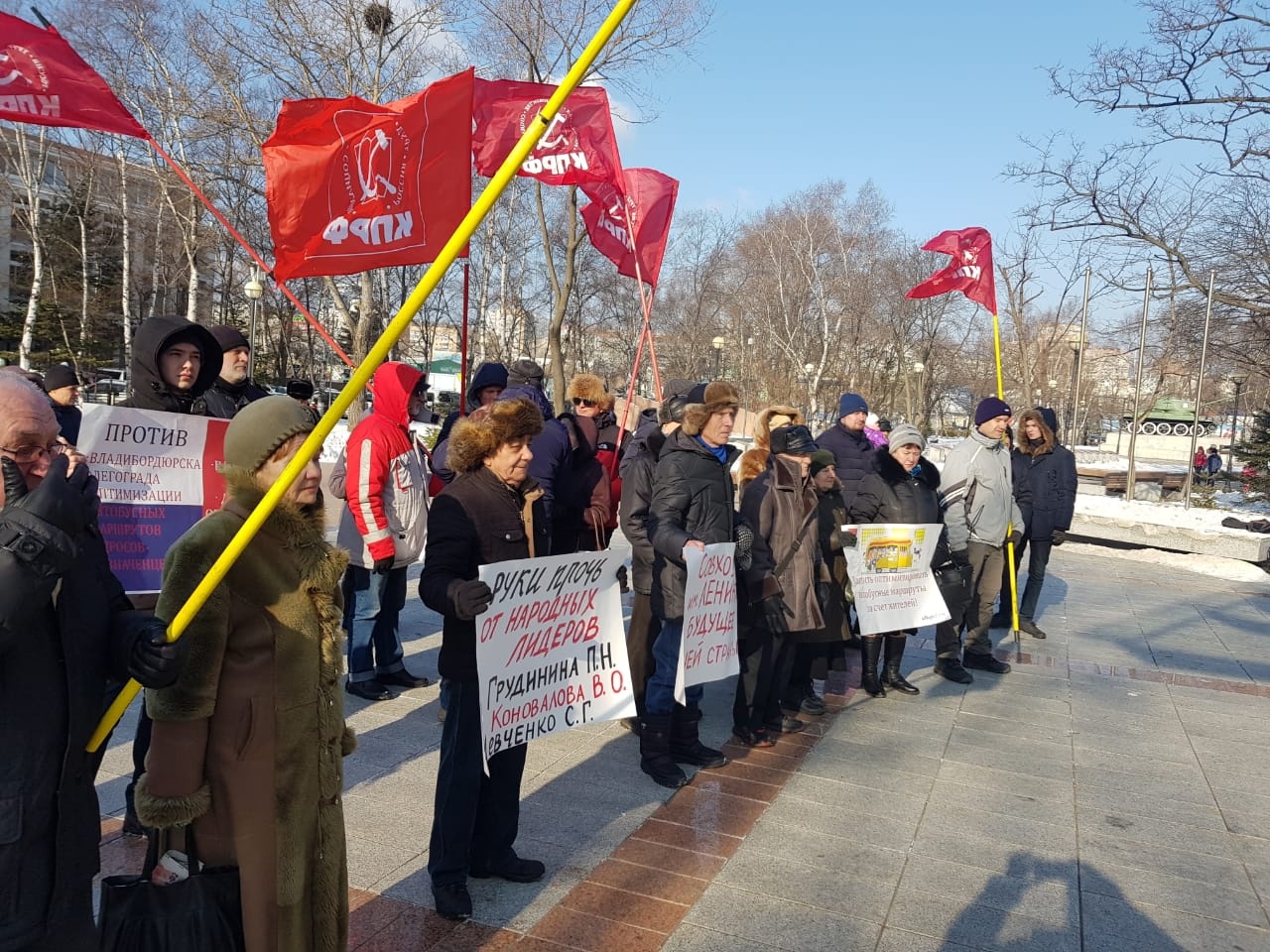 Как рассказал первый секретарь Комитета Приморского краевого отделения КПРФ А.Н. Долгачев, в преддверии Всероссийской акции на территории региона состоялись сотни одиночных и массовых пикетов в поддержку «красных» губернаторов и Павла Грудинина. Люди по велению души и сердца выходили на улицы, чтобы еще раз доказать действующей власти, что ее гнусная ложь и прессинг не останется без внимания патриотов России. Борьба за справедливость и торжество закона будет продолжена.