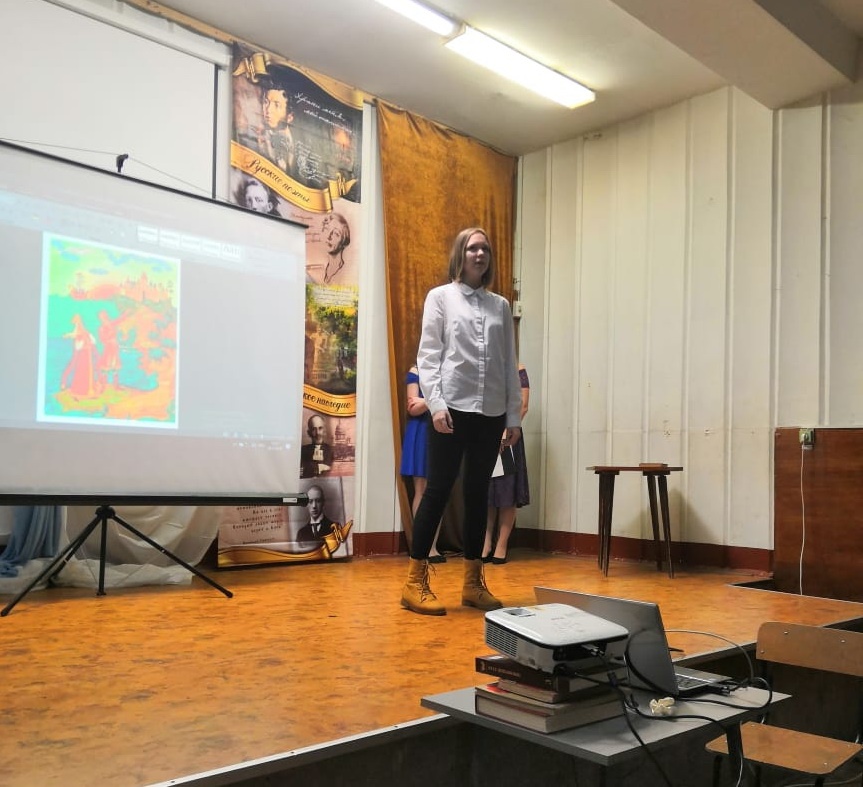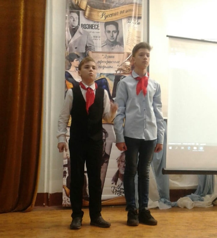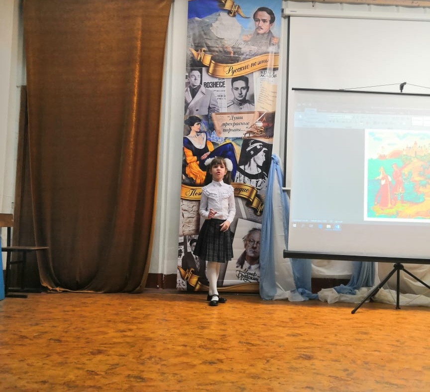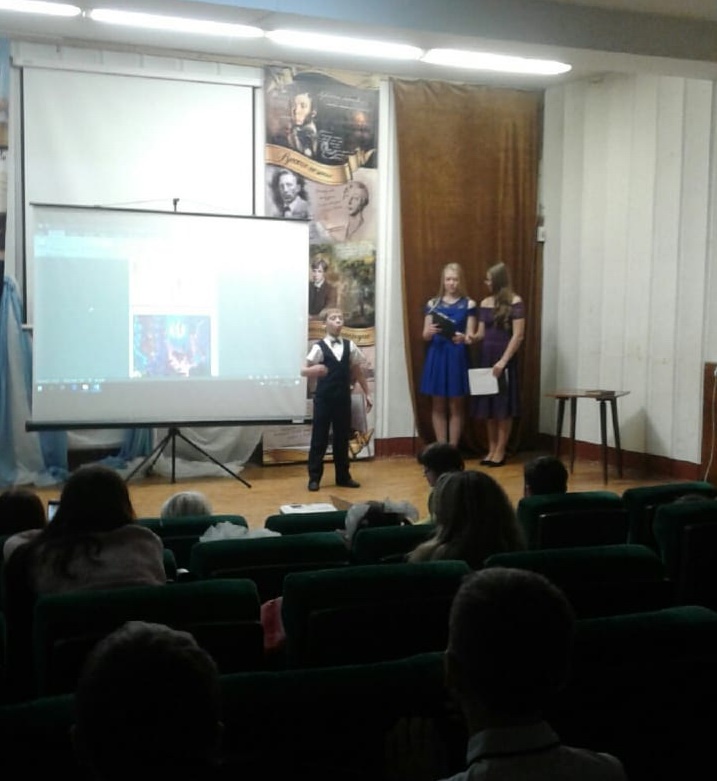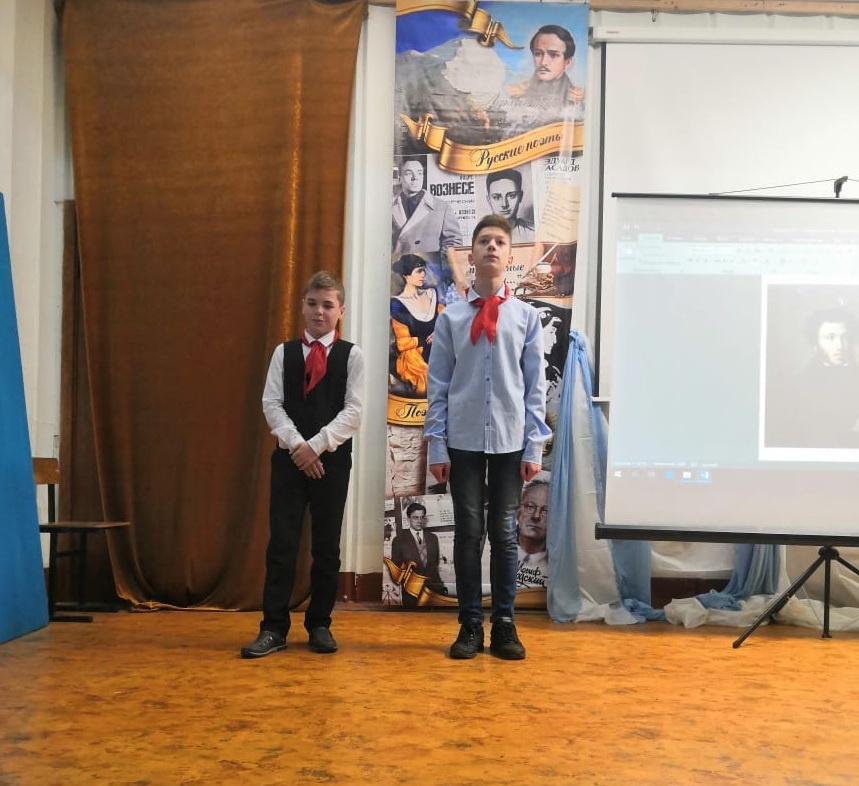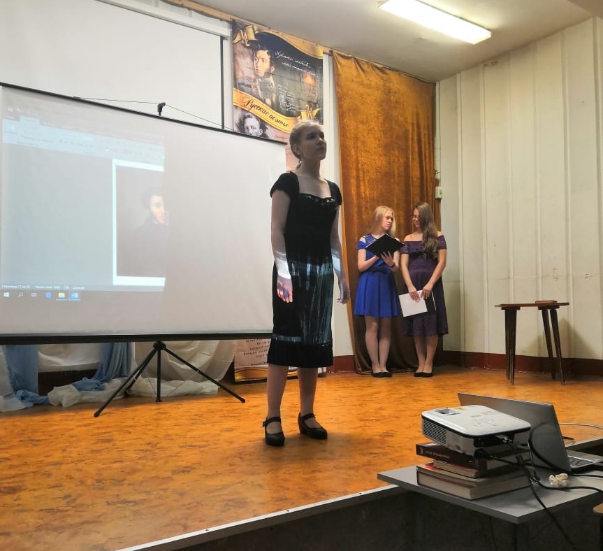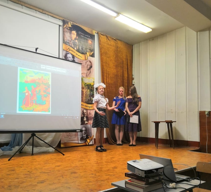 Школяры из 1-4 классов читали отрывки о природе из романа в стихах «Евгений Онегин», из «Сказки о царе Салтане». Представитель 5-7 классов продекламировал отрывок из «Капитанской дочки» (проза), а в исполнении скрипачей - брата и сестры Ляпиных (школа № 39) прозвучал вальс Г. Свиридова к повести Пушкина А.С. «Метель». Аня Ляпина исполнила два романса на стихи Пушкина «Буря мглою небо кроет…» и «Талисман».