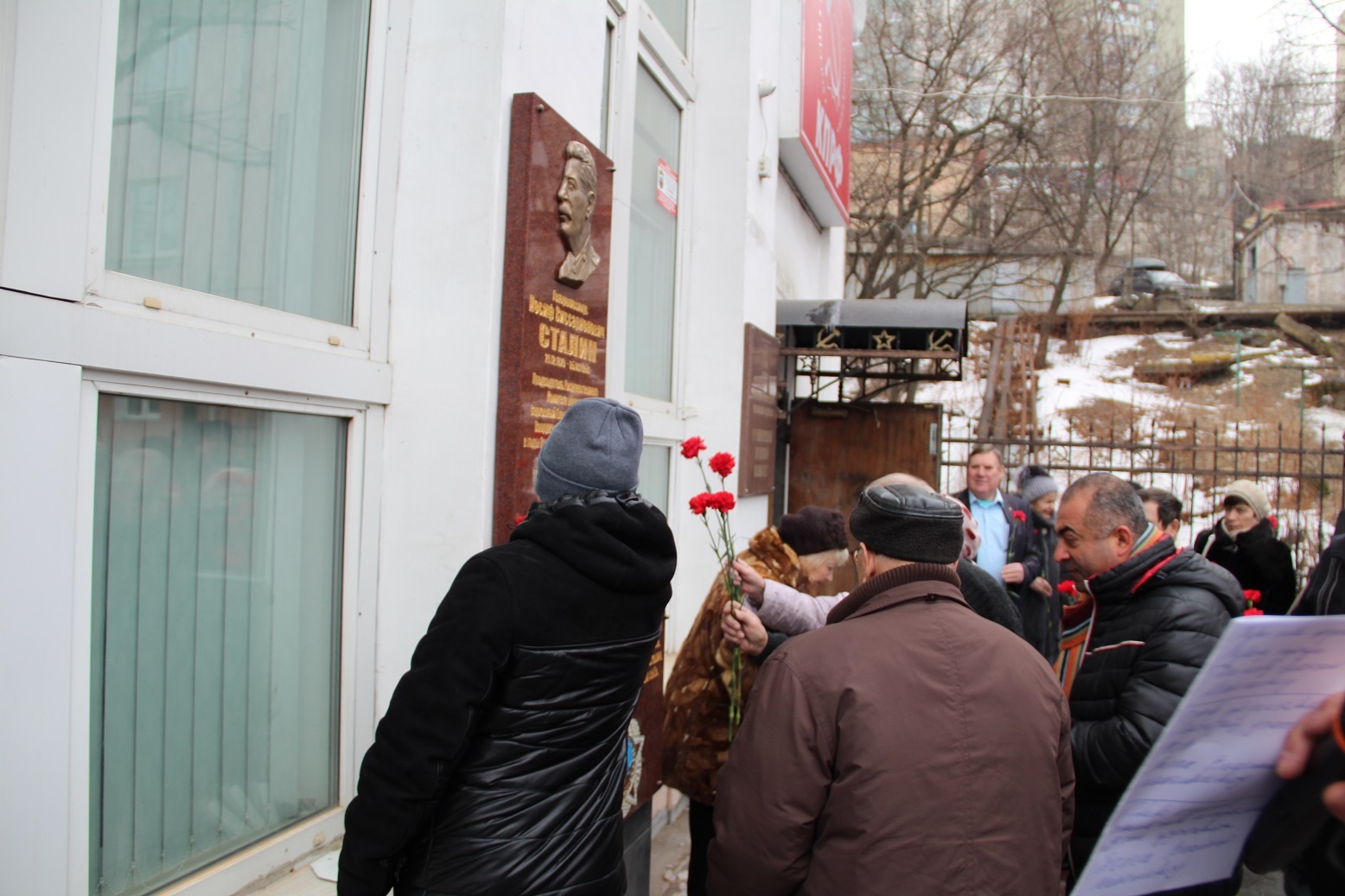 Сегодня, 21 декабря 2019 года, во Владивостоке на фасаде здания по Партизанскому проспекту, 12, где располагается комитет Приморского краевого отделения КПРФ, была тожественно открыта мемориальная доска руководителю Советского государства, Маршалу Советского Союза, Генералиссимусу Советского Союза И.В. Сталину.