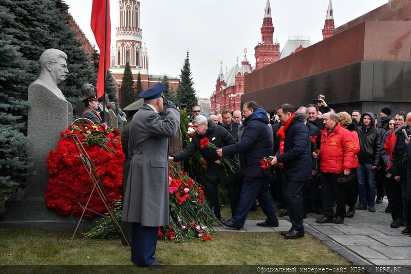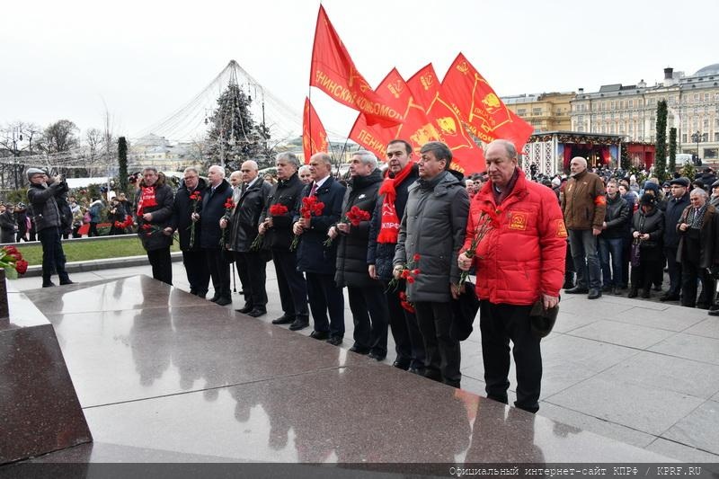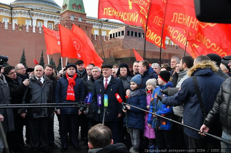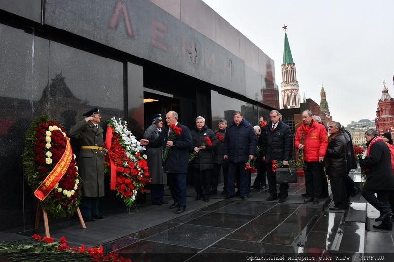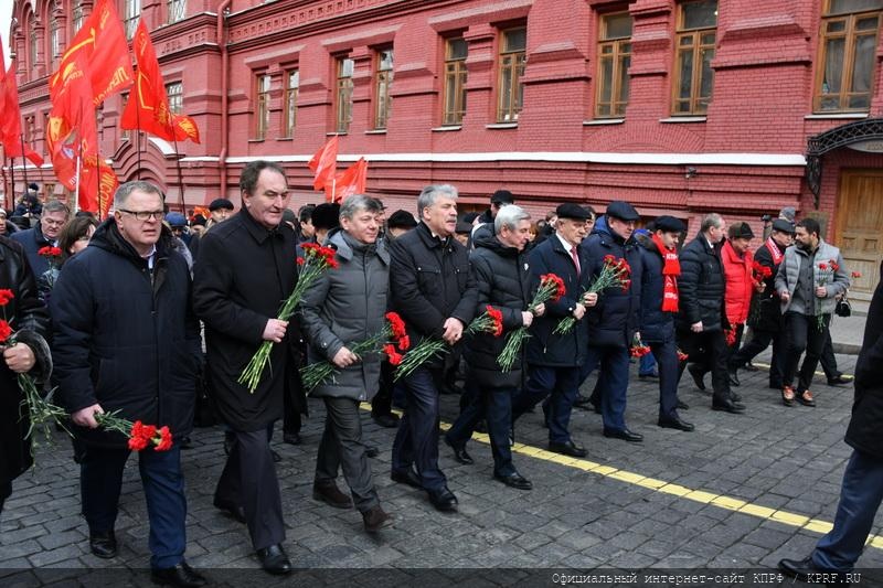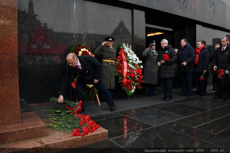 Цветы и венки были также возложены к Мавзолею В.И. Ленина. Колонну под красными знаменами возглавил лидер КПРФ и народно-патриотических сил России Г.А. Зюганов.