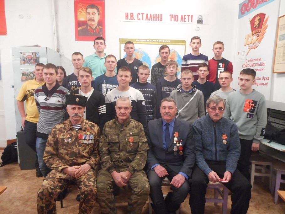 В мероприятии приняли участие сыновья участников Великой Отечественной войны – бывшие и нынешние преподаватели колледжа, сохранившие верность социалистическим ценностям: Ульянов Александр Михайлович, Крапотин Валерий Кузьмич, Кулинич Виктор Васильевич, Матвейчук Валерий Ефимович, Воробьёв Андрей Васильевич. Все они от имени Центрального Комитета Коммунистической партии Российской Федерации были награждены памятными медалями «В ОЗНАМЕНОВАНИЕ 140-ЛЕТИЯ СО ДНЯ РОЖДЕНИЯ И.В.СТАЛИНА».