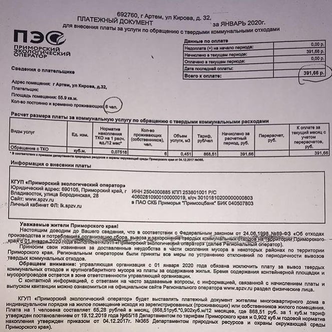 При этом Приморский экологический оператор, как ни в чем не бывало, предлагает жителям самим ходить по инстанциям, отстаивать многочасовые очереди в МФЦ - только для того, чтобы доказать, что ты не "верблюд". Разумеется, времени и здоровья на эти хождения есть не у всех, поэтому кто-то вынужден будет оплачивать и за себя, и за того парня. Видимо, такой и был расчёт авторов "мусорной реформы" - содрать с народа побольше денег, а там всё благополучно списать на "технические ошибки".