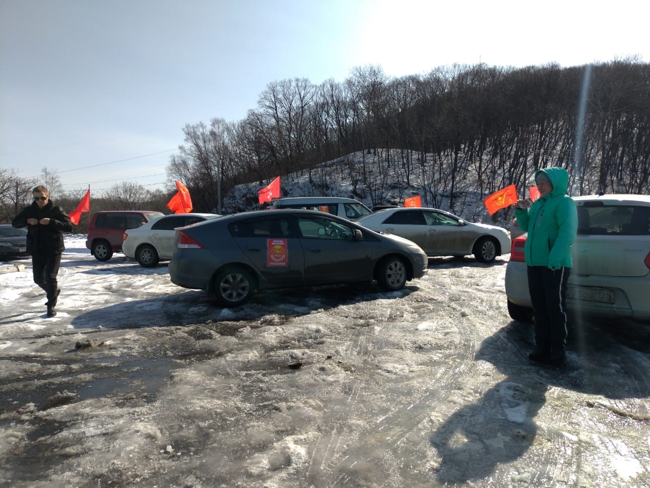 Находкинское местное отделение КПРФ организовало и провело автопробег по случаю 102-ой годовщины Рабоче-Крестьянской Красной Армии и Военно-Морского флота.
