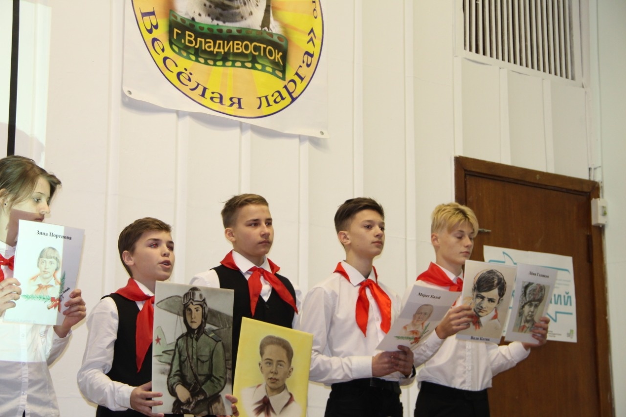 В канун Всемирного дня Памяти юного героя-антифашиста в Малом зале Владивостокского городского Дворца детского творчества состоялась встреча школьников среднего звена и старших пионеров, которые были организаторами этого мероприятия.