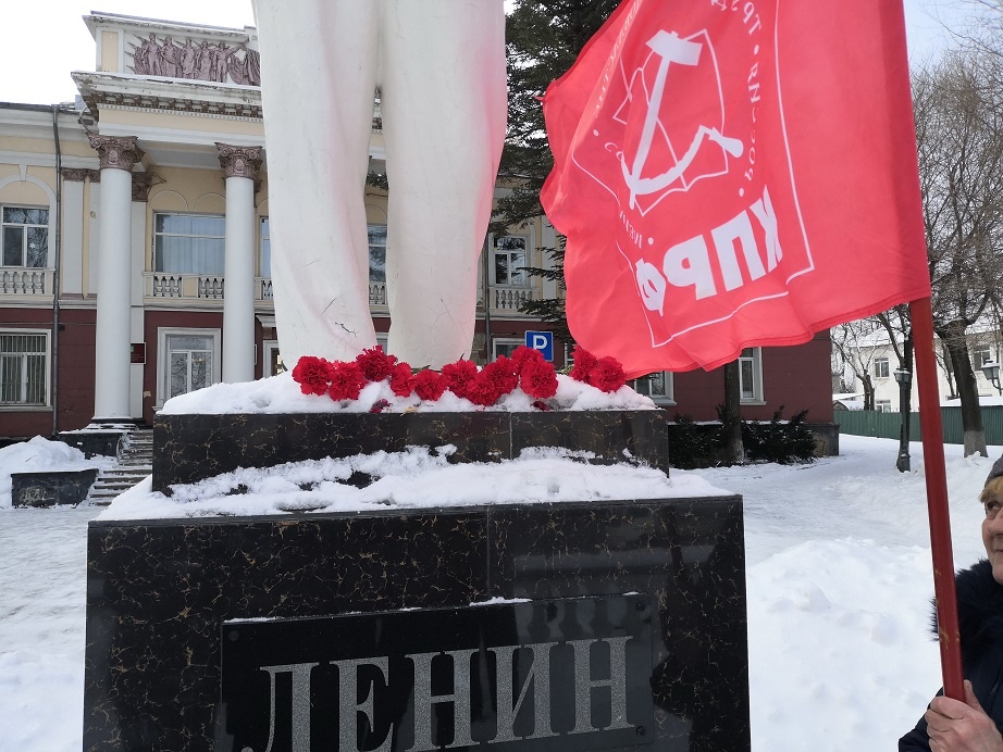 В памятный день И.В. Сталина по традиции были возложены цветы к памятнику В.И. Ленину возле здания бывшего горкома КПСС.