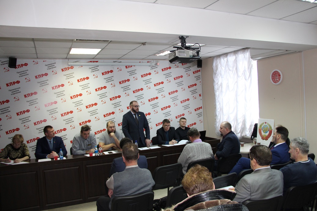 Со вступительным словом выступил первый секретарь краевого Комитета А.Н. Долгачев. Он рассказал о консолидации и совместной, слаженной работе депутатов всех уровней, представляющих Коммунистическую партию Российской Федерации. Также выступили второй секретарь Комитета ПКО КПРФ Е.И. Ляшенко, депутат А.А. Самсонов, которые поделились опытом работы в Законодательном Собрании ПК и в Думе города Владивостока.