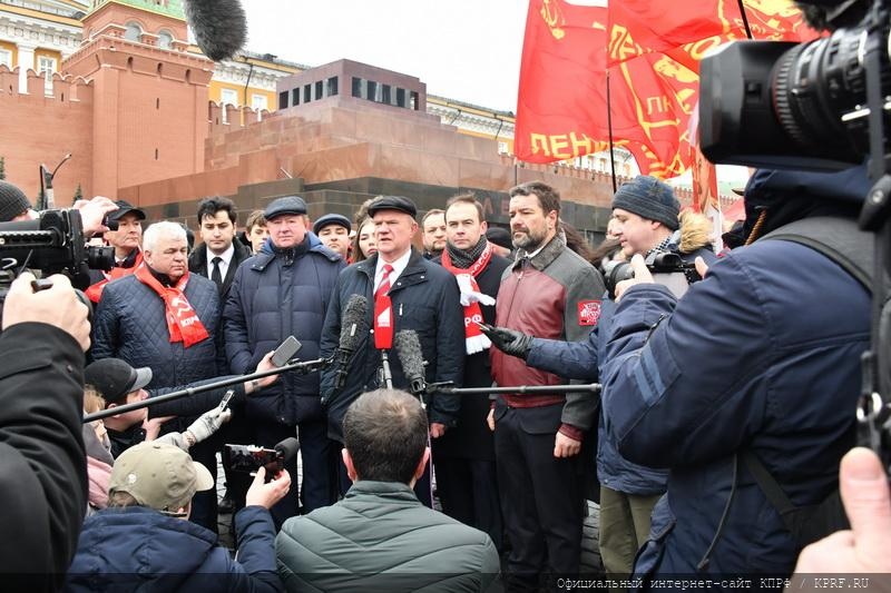 По окончании траурной церемонии лидер КПРФ выступил перед журналистами.