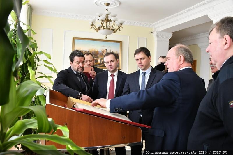 К этому добавим, что в поездке Г.А. Зюганова сопровождают его заместители В.И. Кашин, Д.Г. Новиков, Ю.В. Афонин, члены Президиума, секретари ЦК КПРФ К.К. Тайсаев и Н.В. Коломейцев, первый секретарь Орловского обкома КПРФ, член Совета Федерации Федерального Собрания РФ В.Н. Иконников, первый секретарь Хакасского рескома КПРФ, губернатор Республики Хакассия В.О. Коновалов, руководитель подмосковного совхоза им. В.И. Ленина П.Н. Грудинин, депутат Госдумы А.А. Ющенко.