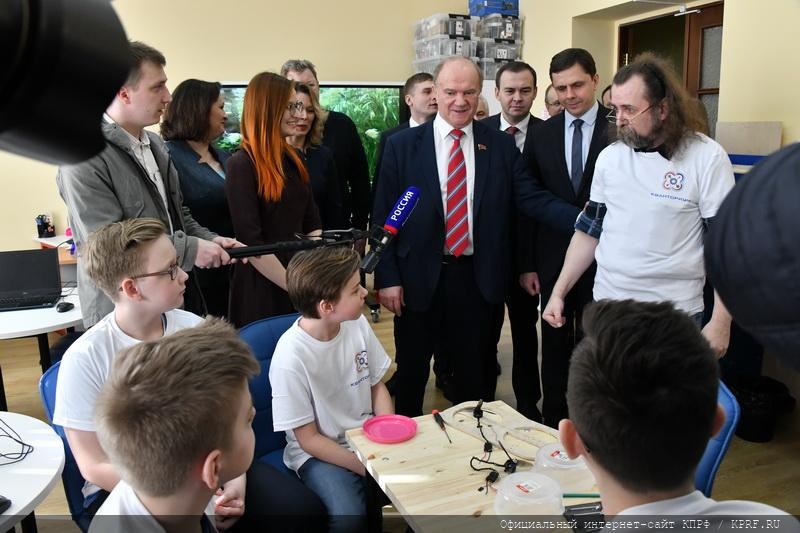 Затем Председатель ЦК КПРФ посетил Орловский Дворец пионеров и школьников (основан в 1924 году). В этом здании размещается детский технопарк «Кванториум Орел» на 800 детей. Это учебное заведение дополнительного образования, оснащенное современным техническим оборудованием. Над детским технопарком шефство взял сам губернатор Орловской области коммунист А.Е. Клычков. Он решает вопрос о новом помещении для расширения площадей детского технопарка. Будут также созданы и оборудованы мобильные "Кванториумы" на колесах, которые смогут перемещаться по всей области. Геннадий Андреевич пообщался здесь с преподавателями и учащимися. Дети с радостью показали ему свои технические поделки.