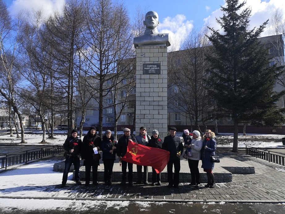 20 марта 2020 года, по случаю 137-ой годовщины со дня рождения Фёдора Андреевича Сергеева – пламенного революционера, близкого друга И.В. Сталина и С.М. Кирова, артёмовские коммунисты по традиции возложили цветы к памятнику товарищу Артёму, имя которого и носит приморский город.