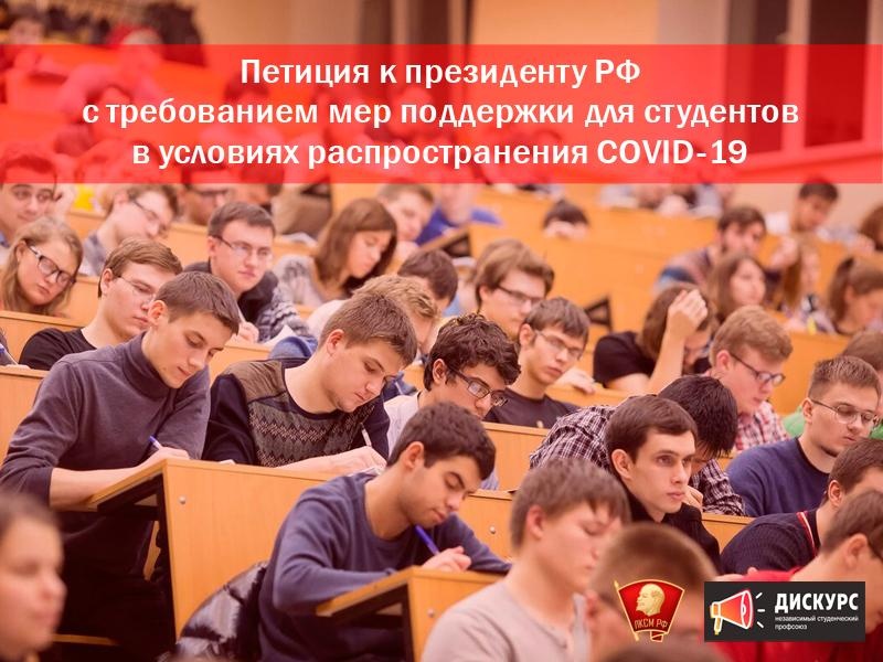 Ленинский комсомол и независимый студенческий профсоюз «Дискурс» запустили сбор подписей под петицией к президенту РФ с требованием защитить права студентов в период эпидемии COVID-19 и экономического кризиса.