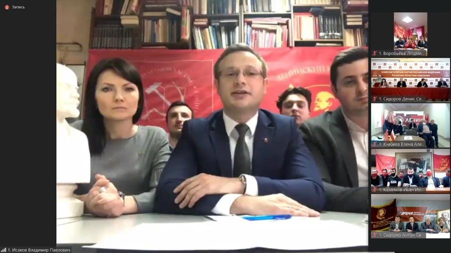 Первый секретарь ЦК ЛКСМ РФ В.П. Исаков отметил, что Комсомол опирается в своей работе на накопленную коммунистическим движением теоретическую базу. «Наша задача сегодня – суметь грамотно распорядиться этим наследием», - заявил он. Владимир Павлович рассказал о методике идеологической учебы в организации, а также о тех видах работы, которые проводятся в условиях пандемии коронавируса, в том числе посвященных юбилею В.И. Ленина. Кроме того, выступающий сообщил о петициях, направленных Комсомолом в адрес руководства страны, с просьбой оказать помощь студентам.