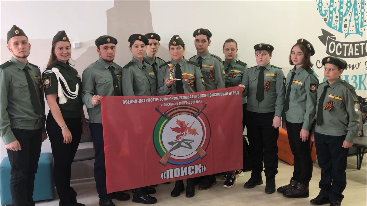 Военно-патриотический исследовательско-поисковый отряд «Поиск» (ВПИПО «Поиск») сформировался в 2014 году на базе школы №4 города Арсеньев под руководством Якимовой М.Н. Главным направлением отряда является не только архивная и поисковая работа, но и участие в Вахтах Памяти. В рамках собственного проекта отряд ежегодно отправляется по Маршрутам Победы по местам Боевой Славы. Его участники уже побывали в городах-героях и городах воинской Славы: Москва, Волоколамск, Калуга, Тула, Волгоград, Минск, Брест (Брестская крепость), хранящих память о Великой Отечественной войне.