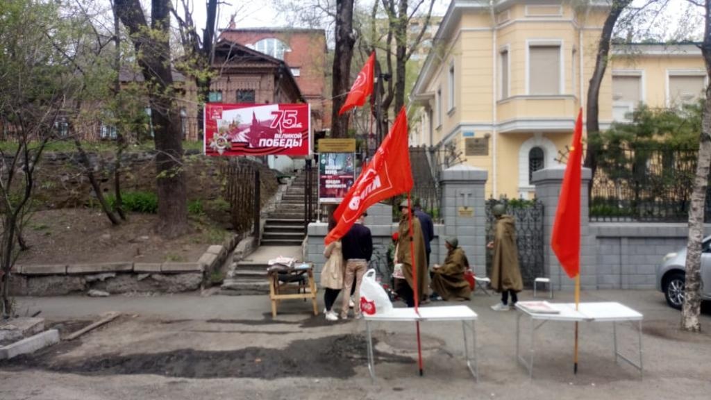 Накануне 9 мая коммунисты-депутаты Самсонов А.А. и Кочугова Н.Ю. вручили памятные подарки и продуктовые наборы ветеранам Великой Отечественной войны, проживающим во Владивостоке, а 9 мая коммунисты провели индивидуальный автопробег с возложением цветов у вечного огня возле «Мемориала подводной лодки С-56».