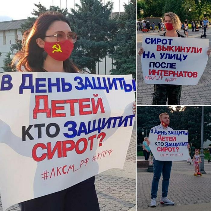 Не оставили без внимания комсомольцы и ребят, оставшихся без попечения родителей. Так, активисты Рязанского областного отделения ЛКСМ РФ посетили областной детский дом, пообщались с его воспитанниками и подарили детям ценные подарки. А в Астрахани комсомольцы провели серию одиночных пикетов, призванных привлечь внимание к проблемам выпускников детских домов. Ежегодно десятки тысяч ребят достигают совершеннолетия, после чего фактически оказываются брошенными на произвол судьбы: даже положенное по закону социальное жильё им подчас приходится ждать годами. Астраханские комсомольцы призвали детей-сирот объединяться для общей борьбы за их права и предложили со своей стороны необходимую юридическую помощь.