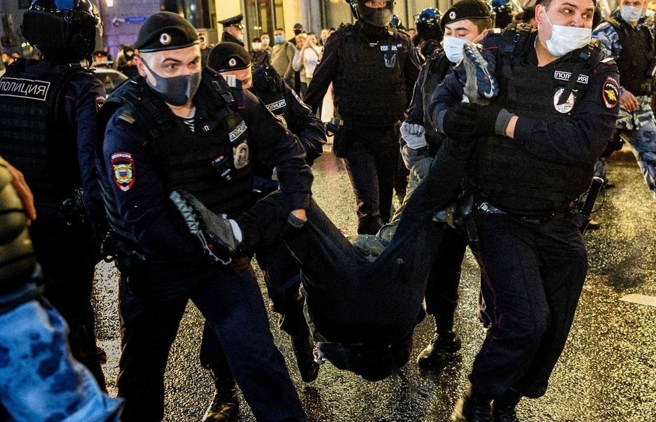 Когда на улице почти никого не остается, последние автозаки уезжают. В форточку автозака один из задержанных продолжает кричать: «Россия будет свободной».