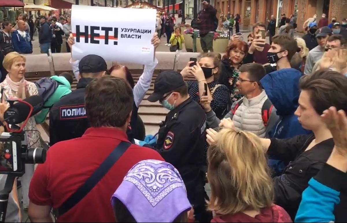 Акция была спокойной, пока проходила только на Пушкинской площади, где организаторы кампании «Нет!» планировали лишь провести сбор подписей против внесений поправок к конституции. Сотрудники полиции и ОМОНа в основном сидели по автобусам, спрятанным в начале Страстного бульвара. А затем москвичи, собравшиеся на Пушкинской, отправились «гулять». Несколько сотен человек начали движение по Страстному бульвару – и тут сотрудники полиции активизировались.