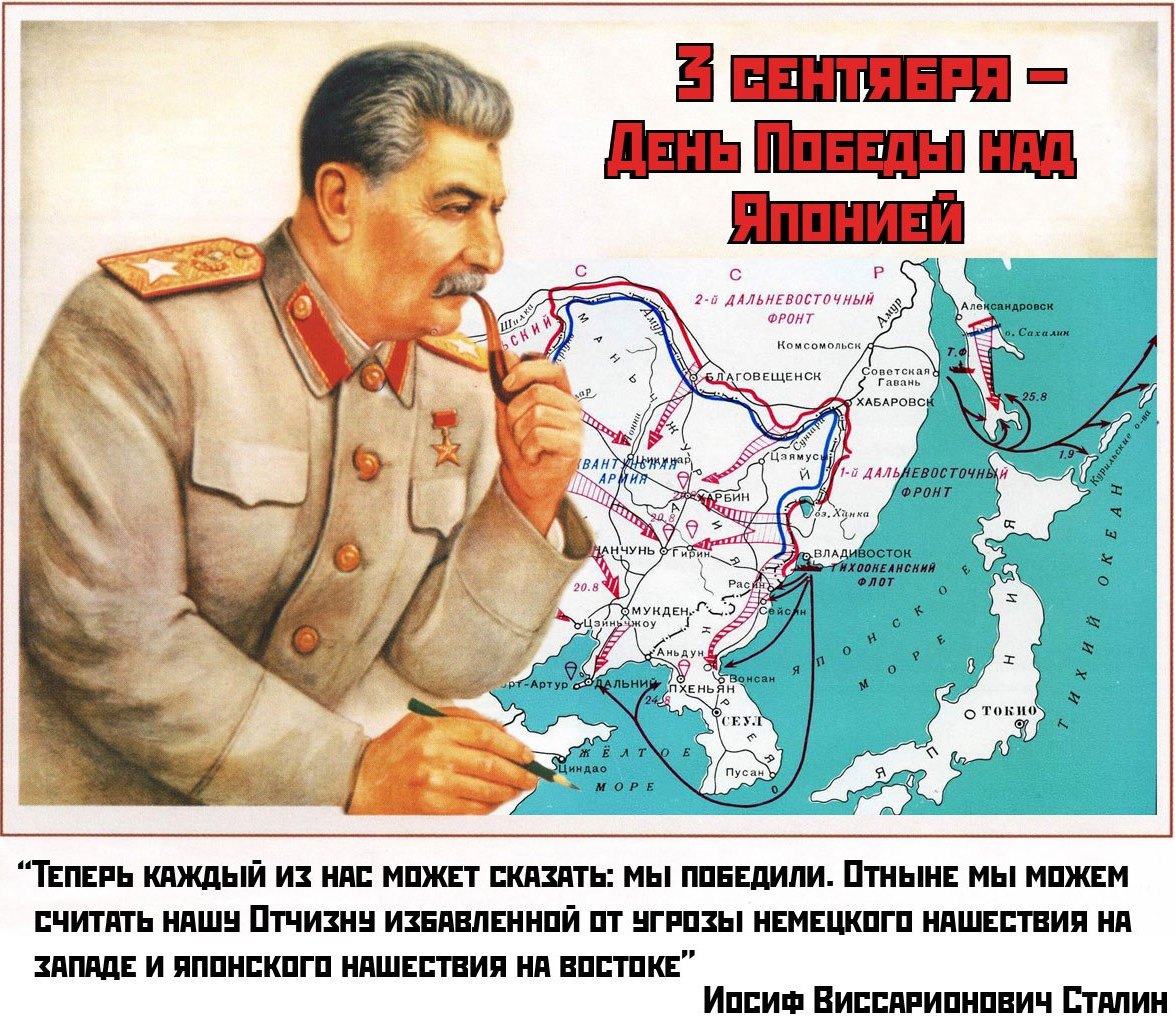 Слава Вооруженным силам Советского Союза, одержавшим победу над Японией!