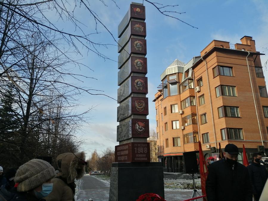 Шестиметровую стелу «Комсомольцам всех поколений посвящается» открыли на Комсомольском проспекте Новосибирска. На нем изобразили все ордена молодежной организации. А ветеранам комсомола вручили маленькие копии памятника.