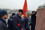 А затем состоялось торжественное возложение цветов к памятнику основателю первого в мире социалистического государства, расположенному в центре города.