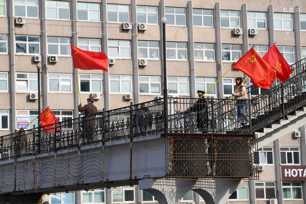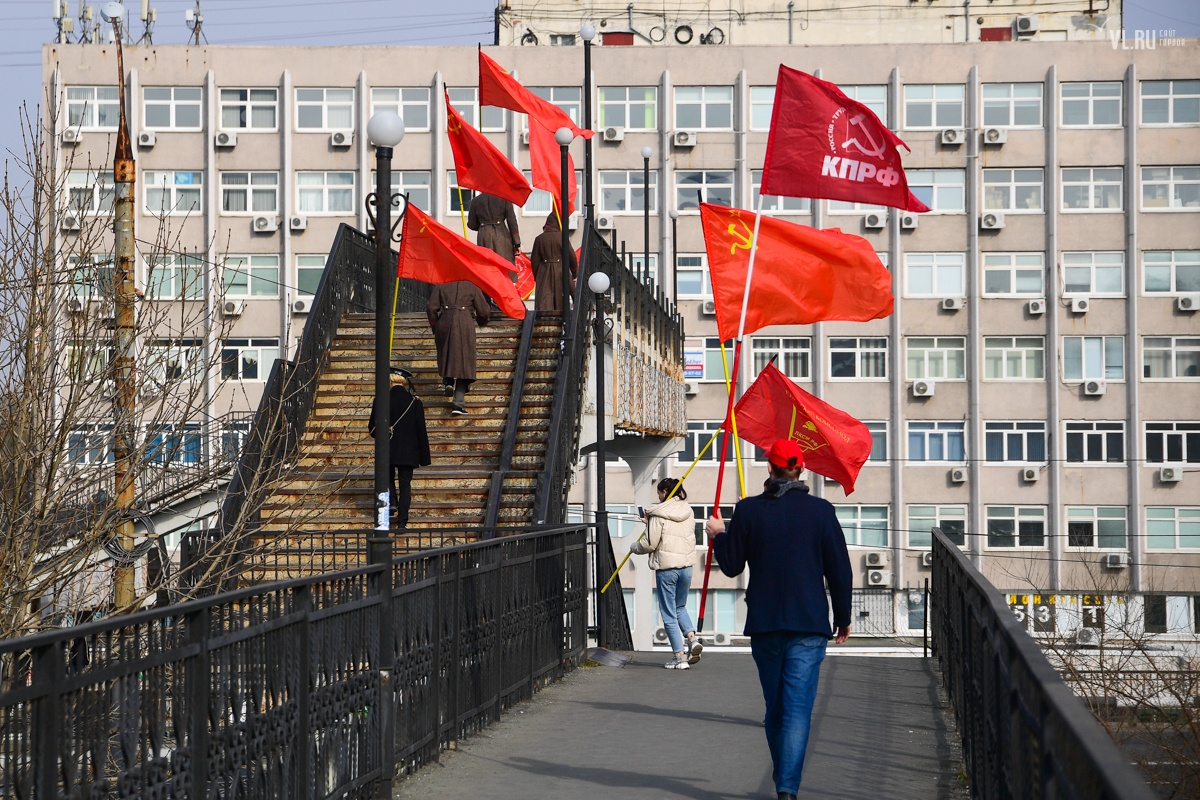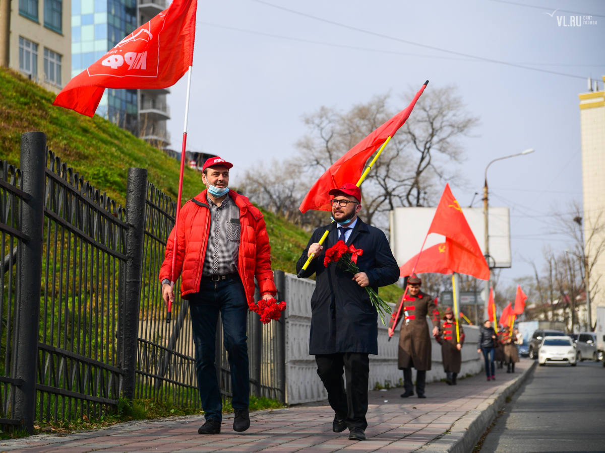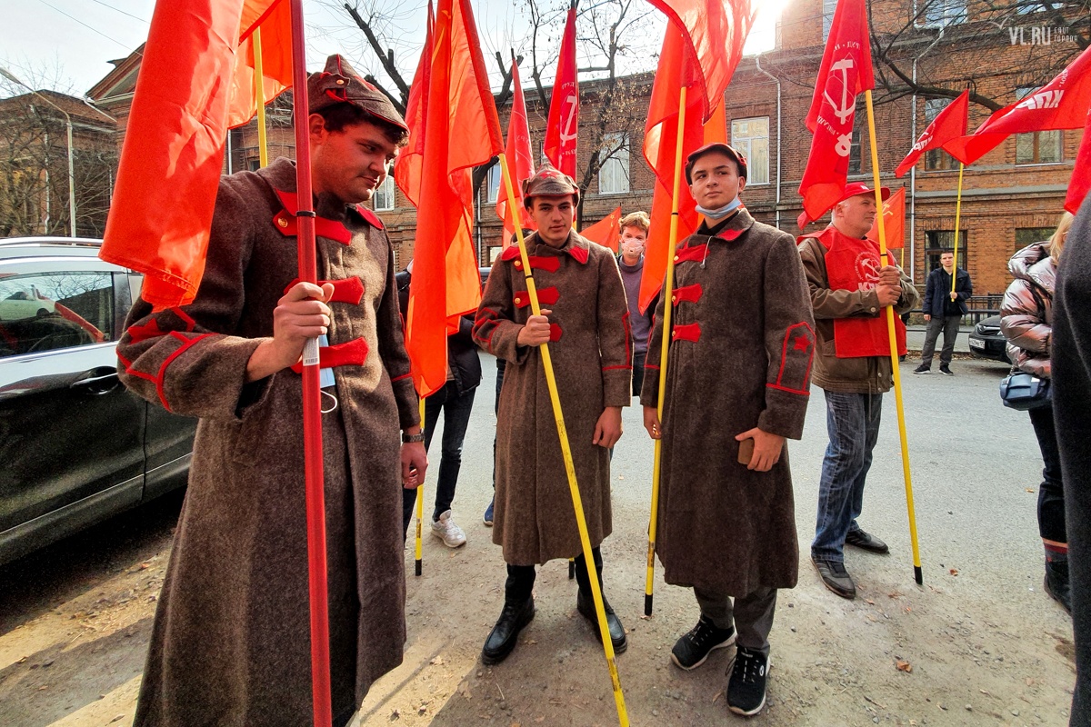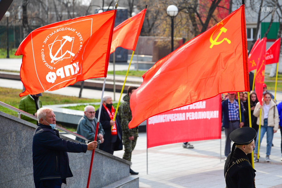 7 ноября приморские коммунисты отметили во Владивостоке 103-ю годовщину Октябрьской революции. Праздновать его вышли студенты и члены партии КПРФ в формате «дистанцированного» шествия от улицы Пушкинской до Второй Речки.