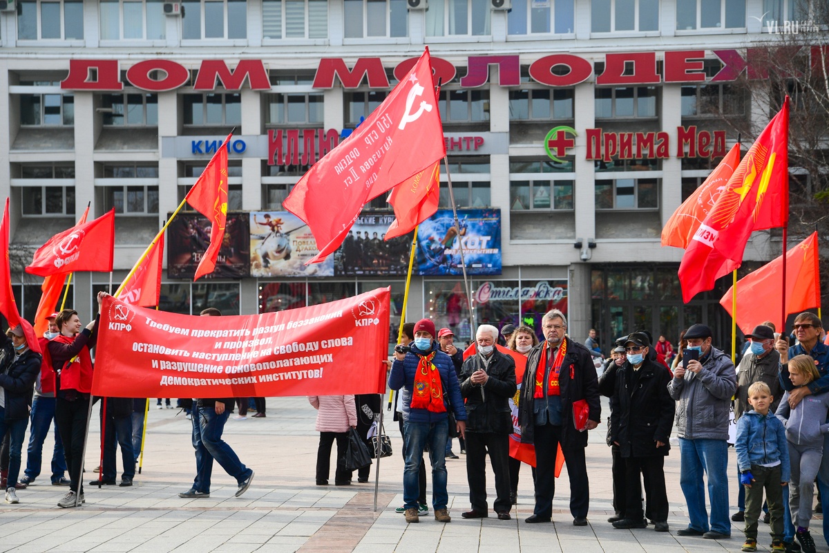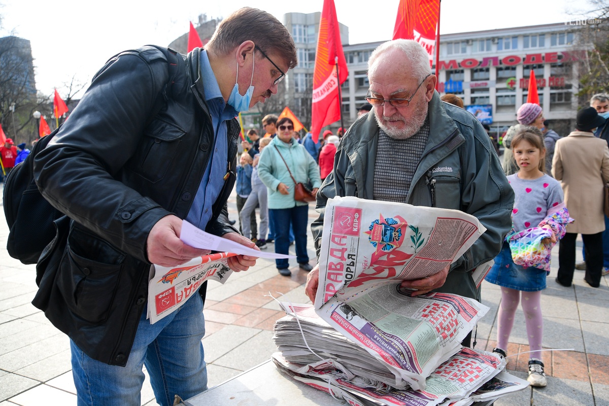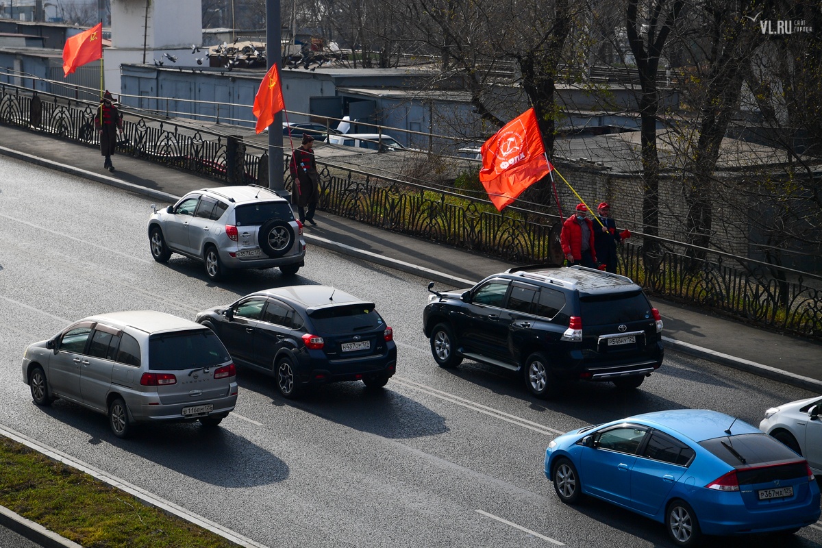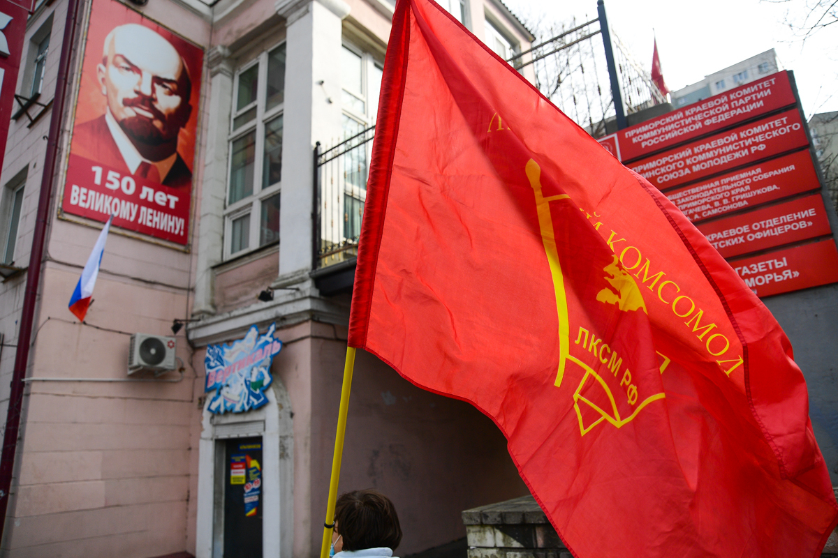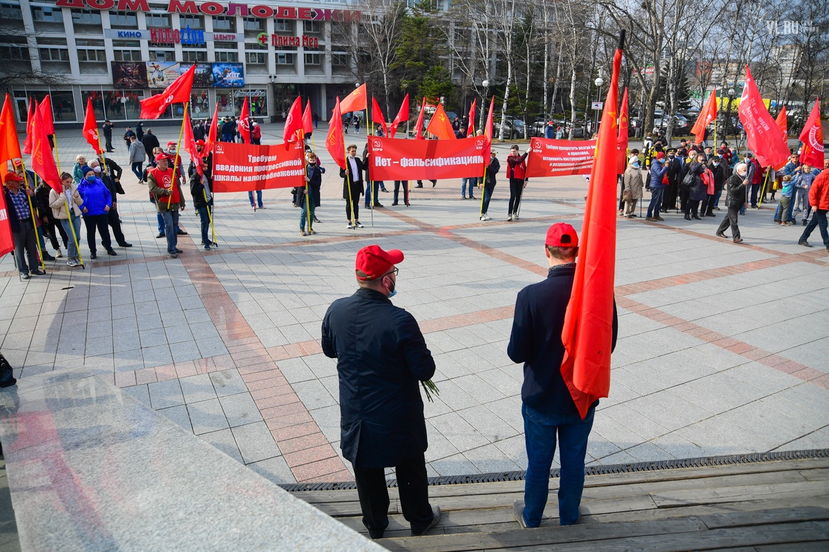 7 ноября приморские коммунисты отметили во Владивостоке 103-ю годовщину Октябрьской революции. Праздновать его вышли студенты и члены партии КПРФ в формате «дистанцированного» шествия от улицы Пушкинской до Второй Речки.