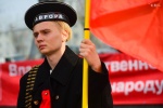 «Понимаете, я ведь сознательно шагаю в рядах моих товарищей под красными знамёнами. Лично я не о себе в такие минуты думаю. У меня трое детей и проблемы, которые уже решены перед моим поколением, сейчас стоят перед ними. Это жильё, медицина и образование. Мне кажется, что вскоре это поймёт и сама молодёжь, что в советское время эти пункты учитывались, а сейчас нет, из-за чего идеи социализма актуальны до сих пор. В моём понимании социализм не надо отрывать от социальной справедливости. Я считаю, что если Россия чего-то и достойна, у неё кроме социализма вариантов нет. Нельзя жить так, когда один побирается, а второй - миллиардер», - считает участник шествия.