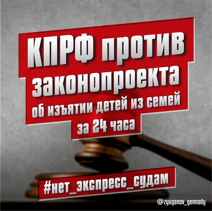 Но вместо этого нам пытаются навязать провокационный закон, дающий право изымать детей из семей в течение 24 часов. Мы, КПРФ, выступаем категорически против данного безобразия. Также мы призываем все здоровые силы общества сплотиться и выступить против этого законопроекта!