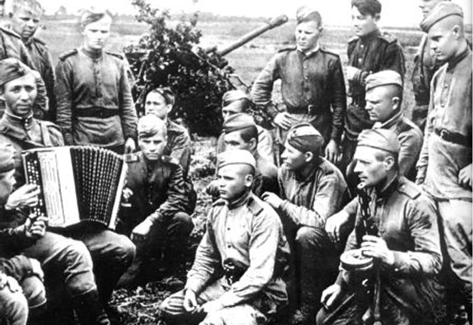 Первой фронтовой песней была «Священная война» советского поэта В.И. Лебедева-Кумача и композитора А.В. Александрова. Потом появились многие другие. Они рассказывали о военных дорогах, о боях и друзьях-товарищах, о родных и близких, оставшихся в тылу. Песни были активными участниками великой войны. Они вливались в сердца солдат и офицеров несокрушимой победной силой.