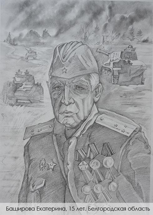 1 степень – Баширова Екатерина, 15 лет. «Портрет фронтовика». Белгородская область, г. Старый Оскол.