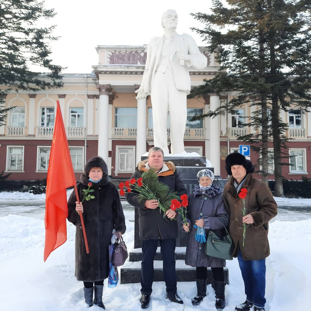 Сегодня, 21 января 2021 года, в городе Артеме состоялось возложение цветов к памятникам Владимиру Ильичу Ленину по случаю 97-ой годовщины смерти вождя Революции, руководителя первого в мире социалистического государства.